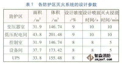 GB50370-2005《氣體滅火系統(tǒng)設(shè)計(jì)規(guī)范》第3.3.4條:油浸變壓器室、帶油開關(guān)的配電室和自備發(fā)電機(jī)房等防護(hù)區(qū),滅火設(shè)計(jì)濃度宜采用9%。第3.3.5條:通訊機(jī)房和電子計(jì)算機(jī)房等防護(hù)區(qū)滅火設(shè)計(jì)濃度宜采用8%。第3.3.7條:在通訊機(jī)房和電子計(jì)算機(jī)房等防護(hù)區(qū),設(shè)計(jì)噴放時(shí)間不應(yīng)大于8s;在其他防護(hù)區(qū),設(shè)計(jì)噴放時(shí)間不應(yīng)大于10s。第3.3.8條:滅火浸漬時(shí)間應(yīng)符合下列規(guī)定:通訊機(jī)房和電子計(jì)算機(jī)房?jī)?nèi)的電氣設(shè)備火災(zāi)應(yīng)采用5min;其他固體表面火災(zāi)采用10min。各個(gè)防護(hù)區(qū)滅火系統(tǒng)的設(shè)計(jì)參數(shù)見表1。